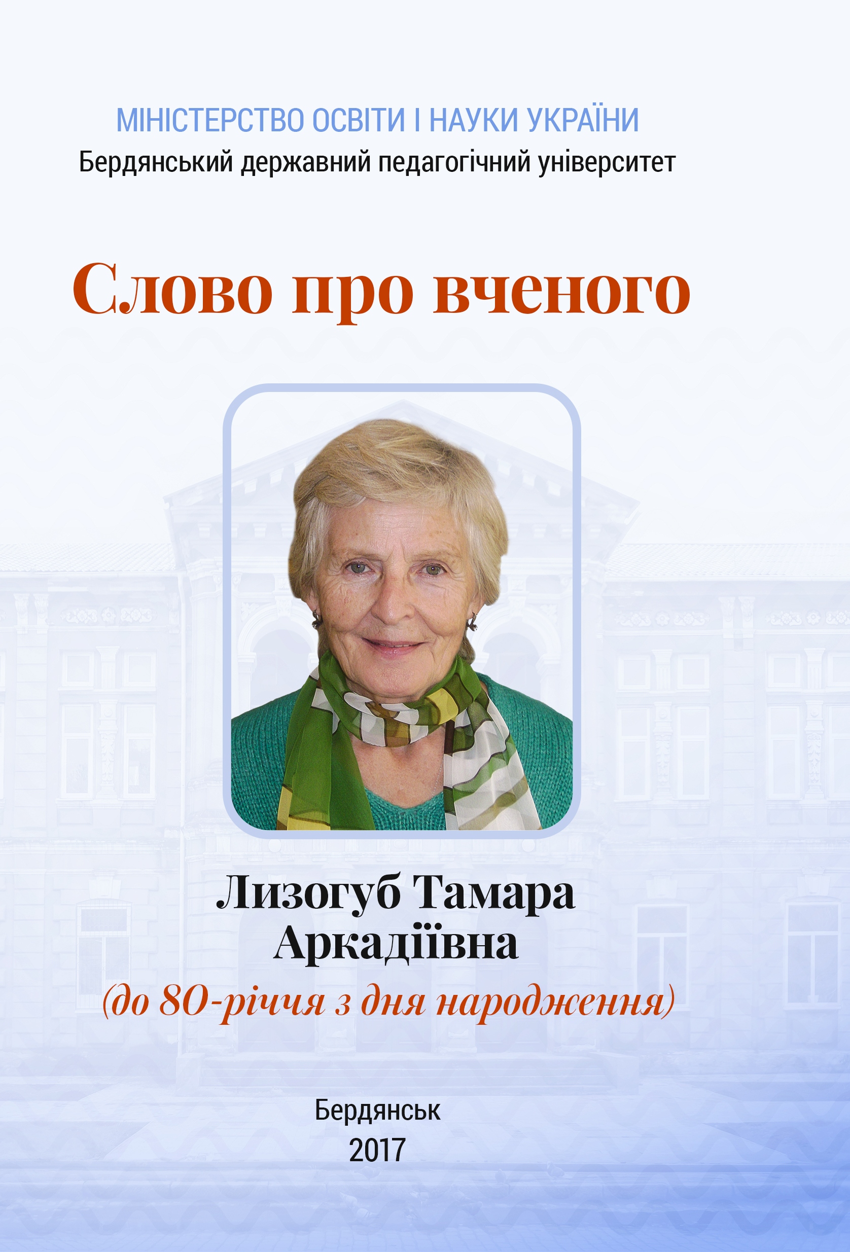 Слово про вченого: Лизогуб Тамара Аркадіївна (до 80-річчя з дня народження) / відп. за випуск В. М. Ліпич (проректор з науково-педагогічної роботи БДПУ) ; упоряд. та комп. набір К. А. Назімова. – Бердянськ : БДПУ, 2017. – 23 с.