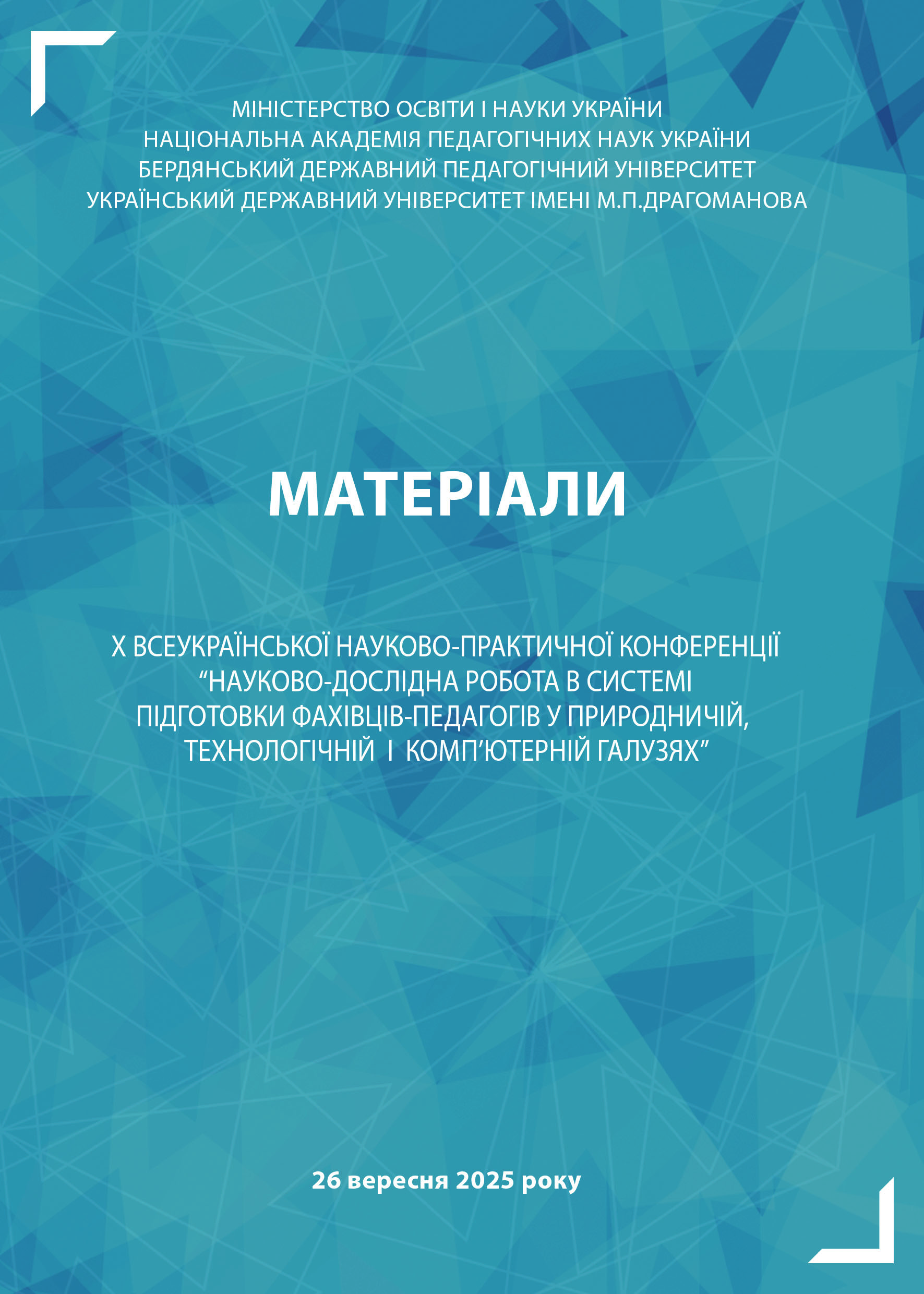 Науково-дослідна робота в системі підготовки фахівців-педагогів у природничій, технологічній і комп’ютерній галузях : матеріали Х Всеукраїнської науково-практичної Інтернет-конференції (26 вересня 2025 р.). – Запоріжжя : БДПУ, 2025. – 200 с.
